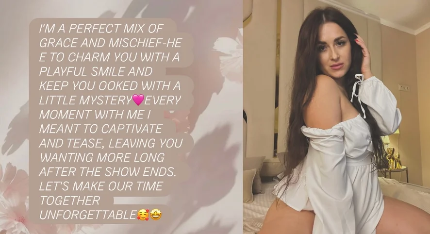 I turn ordinary moments into memorable ones — with atmosphere, emotions and firefly✨ I value sincerity, respect and ease of communication😊I have clear personal boundaries and rules (please observe them)❗ I love to laugh and inspire each other and sometimes just be quiet in comfort. If you are also for honesty, depth and a little magic in everyday life — we are definitely on our way🩷 Honesty in wishes and easy audacity make me crazy. I love it when the tension is slowly building and then suddenly becomes too hot. If you can keep the rhythm — we will check.😋